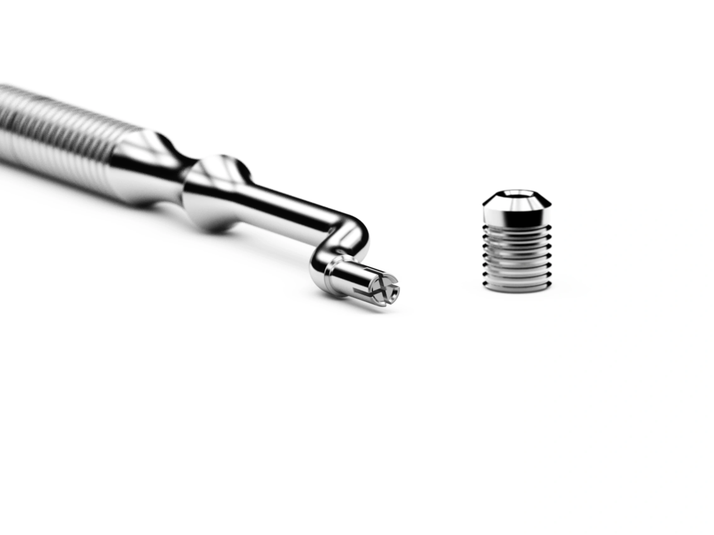Аппликатор осуществляет простой и контролируемый захват, что позволяет точно и надежно позиционировать пины на кости. Снять пинодержатель с пина так же просто - он легко отщелкивается при наклоне.