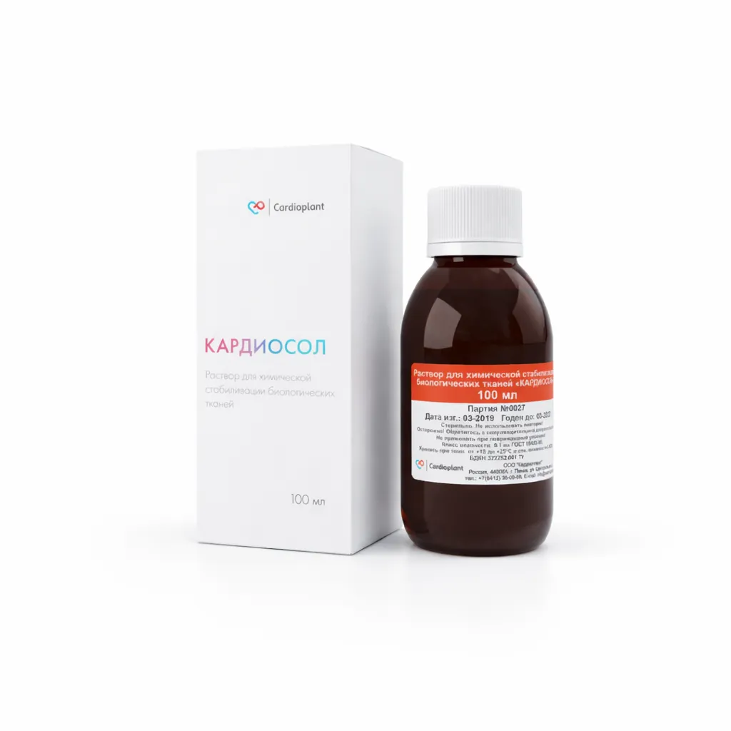 Раствор применяется для химической стабилизации коллагена перикарда перед формированием створки клапана. Обработка обеспечивает необходимую механическую прочность и устойчивость ткани к ферментативной деградации, что критично для работы в условиях постоянной гемодинамической нагрузки.