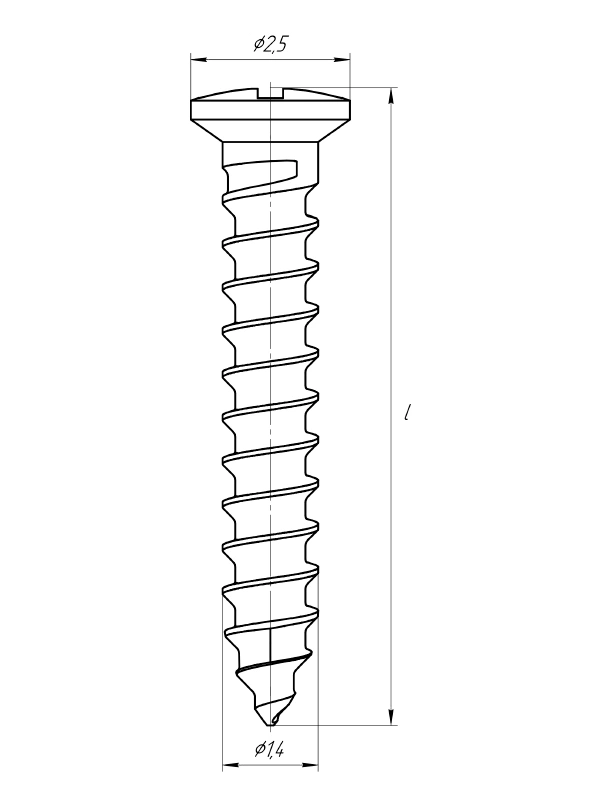• При работе на кости высокой плотности (D1) винты Ø 1.2 мм следует применять с осторожностью: из-за особенной конструкции возможен отлом шляпки.
